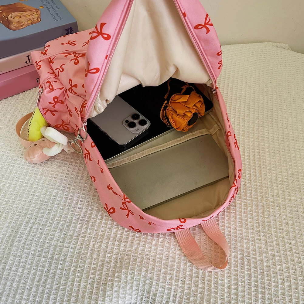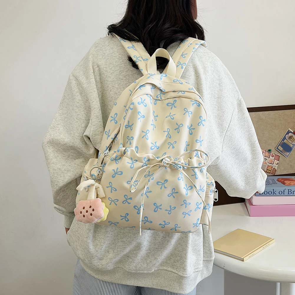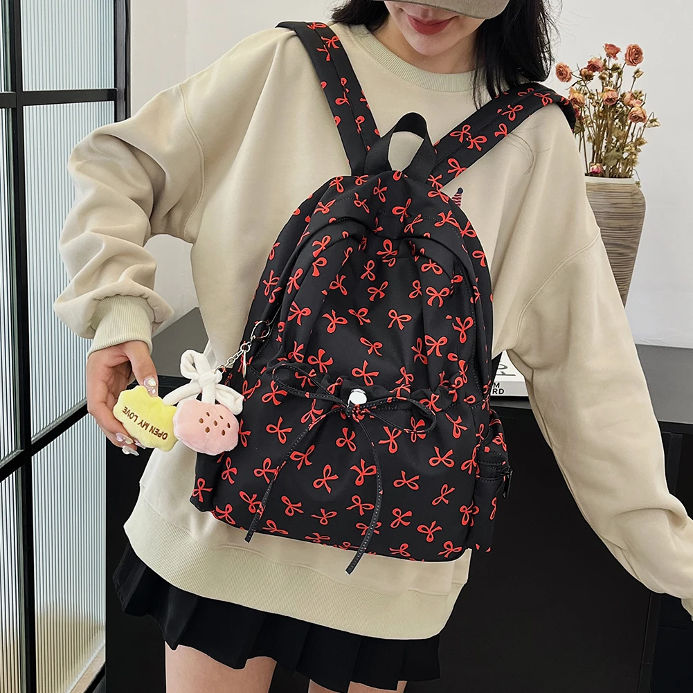 Fashion Trend Backpack Backpack for Women Bow Print Shoulder Bag Nylon Multi Pocklets Laptop Bag Daypack for Travel Work School