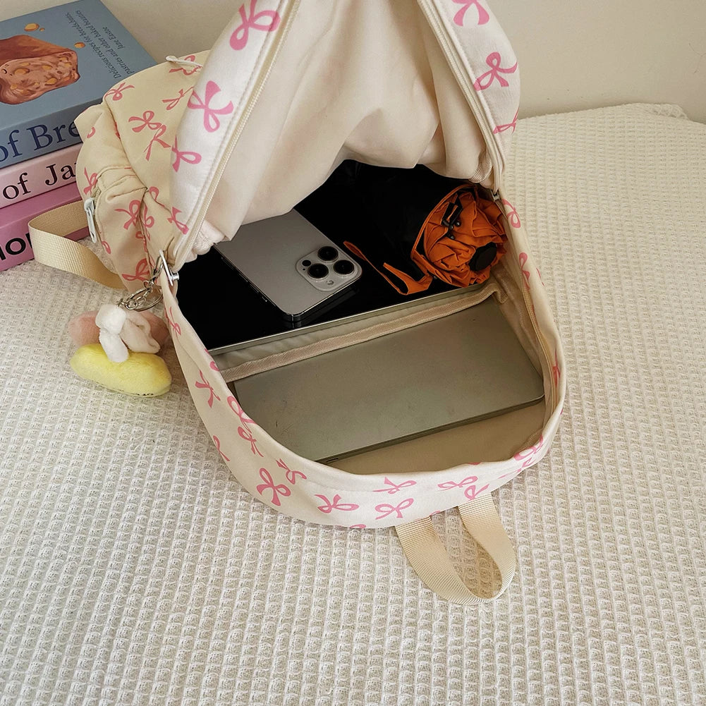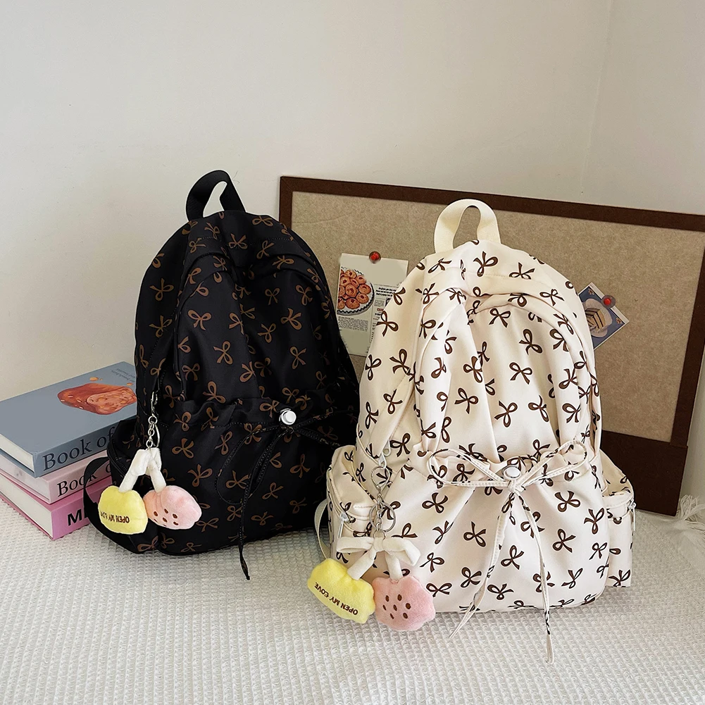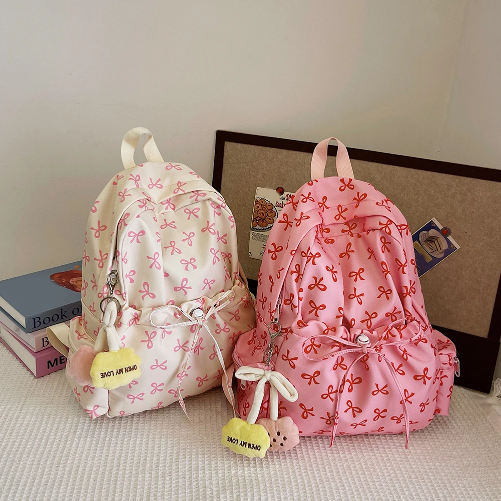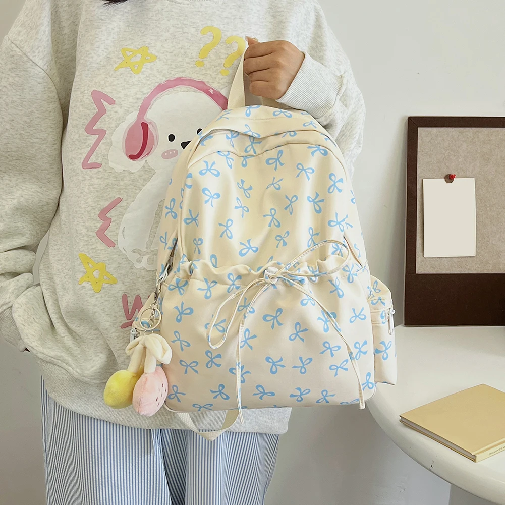 Fashion Trend Backpack Backpack for Women Bow Print Shoulder Bag Nylon Multi Pocklets Laptop Bag Daypack for Travel Work School