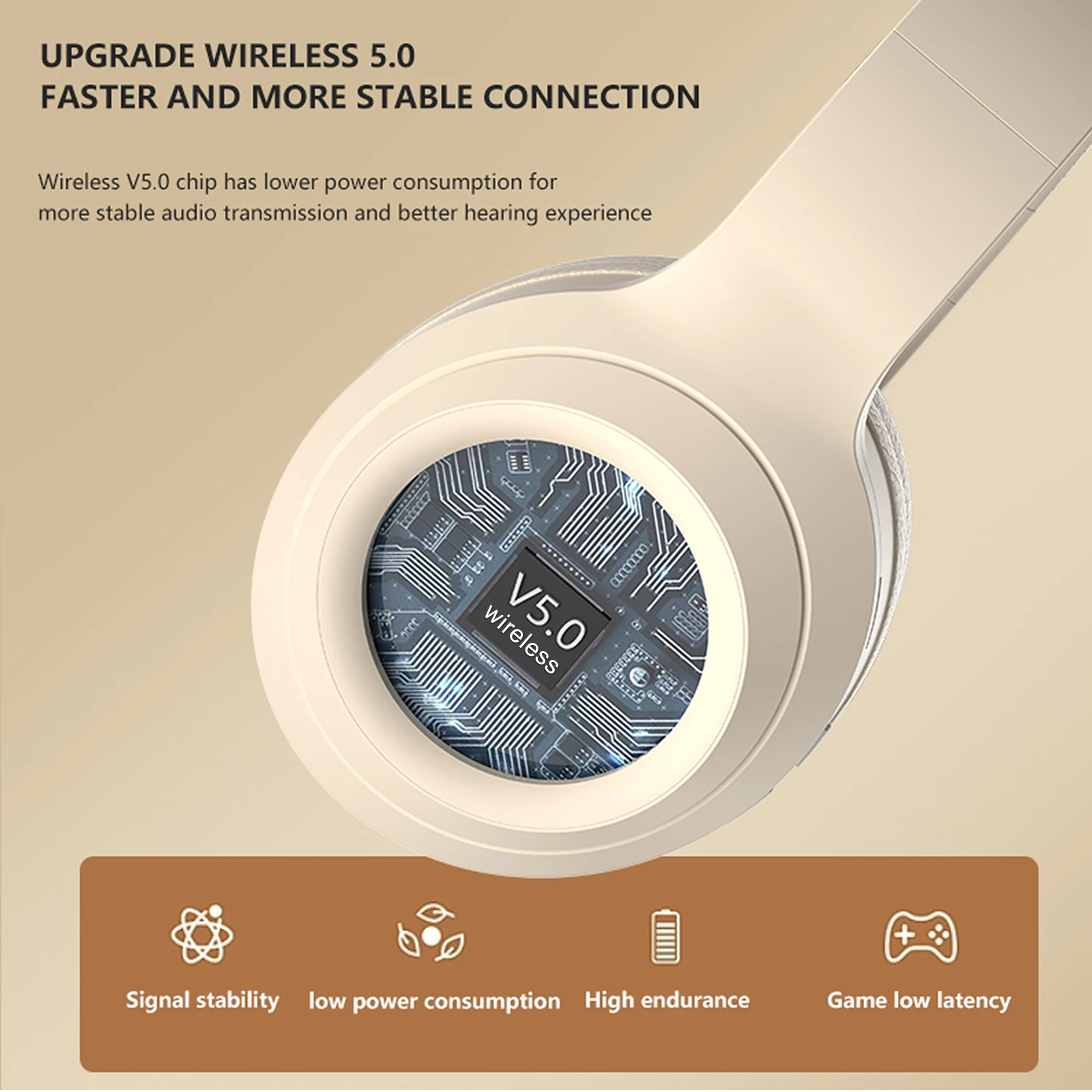Wireless Bluetooth Headphones Over Ear HIFI Stereo Headsets Noise Reduction Sports Gaming Earphones Music Player with Mic Gifts