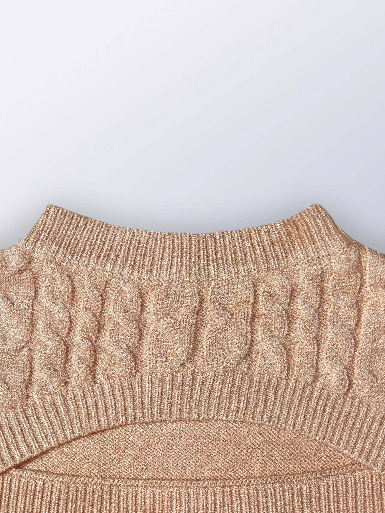 Women's Winter Bodycon Sweater Dress Long Sleeve Round Neck Cutout Waist Ribbed Knit Bodycon Mini Skirt Solid